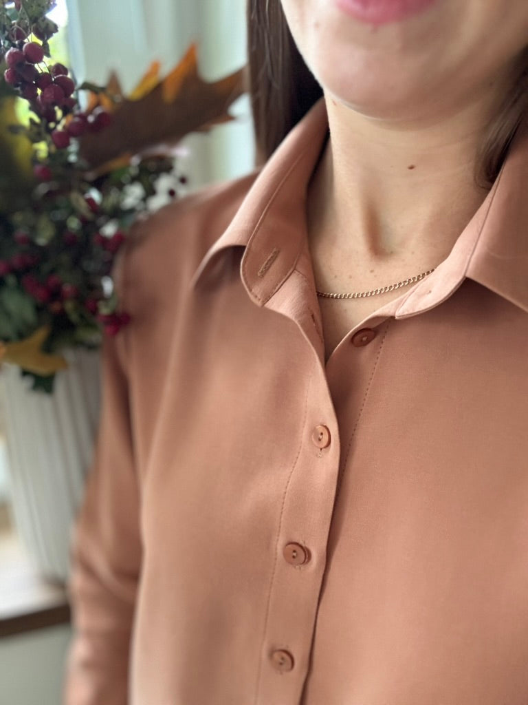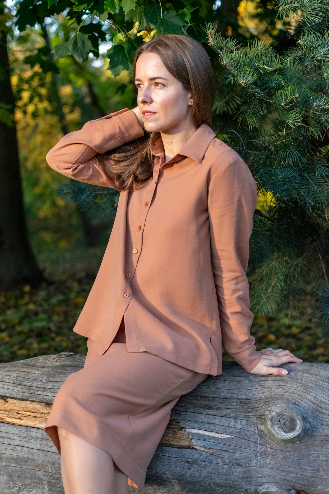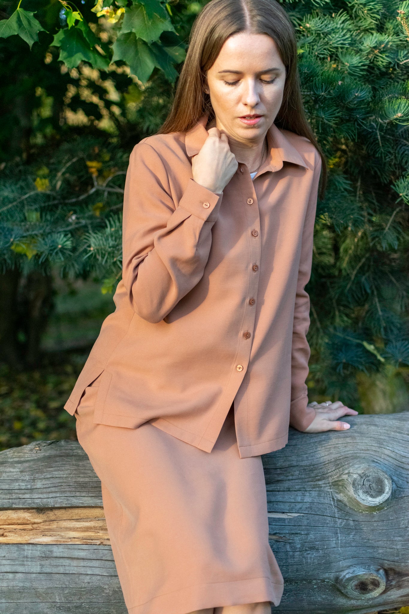 To nie była zwykła koszula. Gaja czekała na wieszaku, aby w końcu stać się częścią dnia kobiety, która wybiera styl, wygodę i odrobinę indywidualności. Rano Gaja delikatnie otula ramiona miękkim rękawem, a pod palcami sunie rząd guzików – zapięcie, które decyduje o tym, jaki ten poranek będzie. Spokojna siła tkaniny daje poczucie lekkości i swobody, pozwala oddychać, podąża za ruchem i myślą. W pracy Gaja jest dyskretna, elegancka – niezauważalna, choć obecna. Wieczorem staje się wyrazem swobodnego stylu, otula ciepłem. Ta koszula to codzienne spotkanie z czymś przyjaznym i naturalnym. Gaja nie narzuca się, a jednak pozwala poczuć się pewnie, niezależnie od chwili i miejsca. Po prostu – jest z Tobą wtedy, gdy chcesz być sobą.