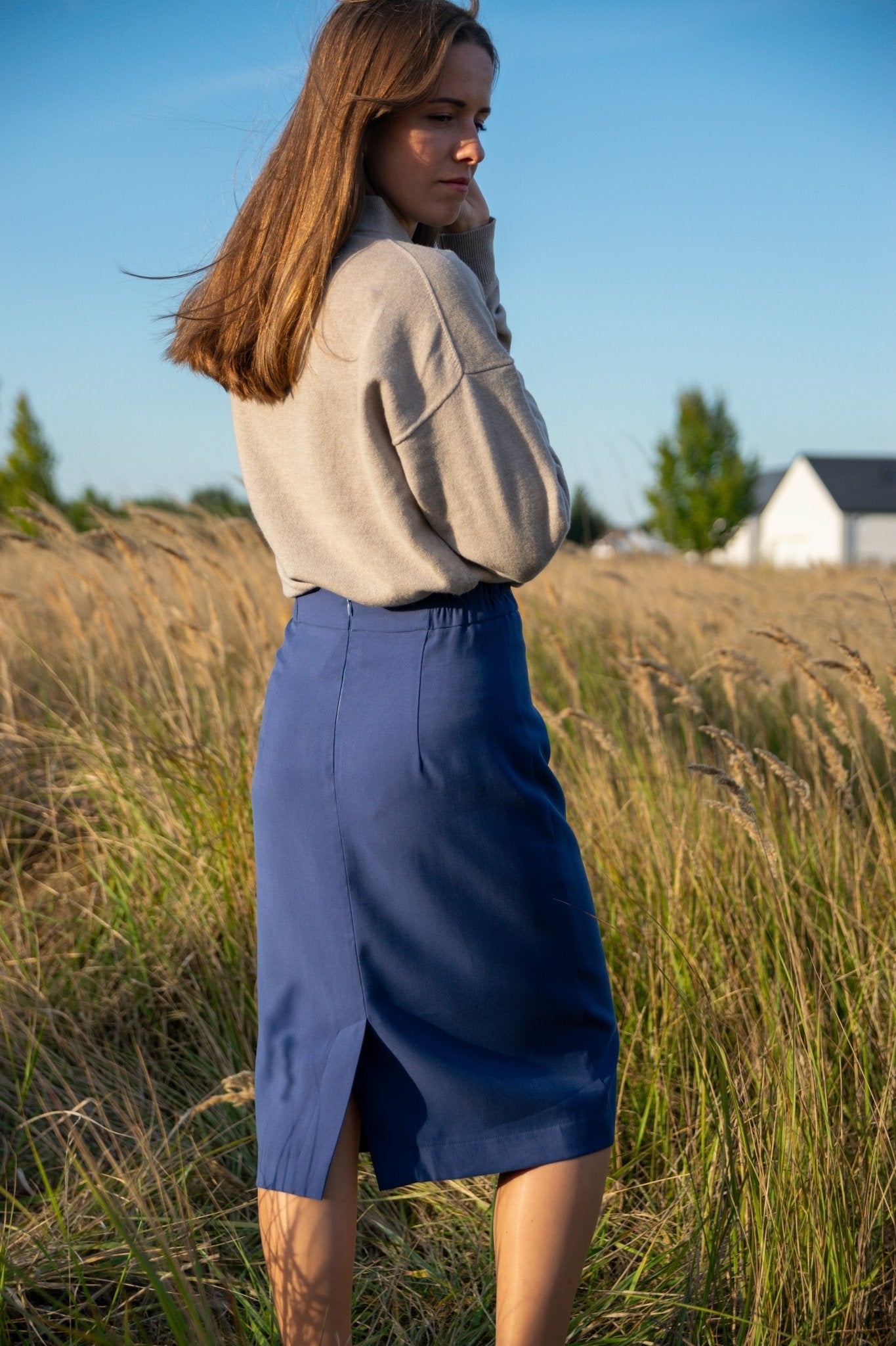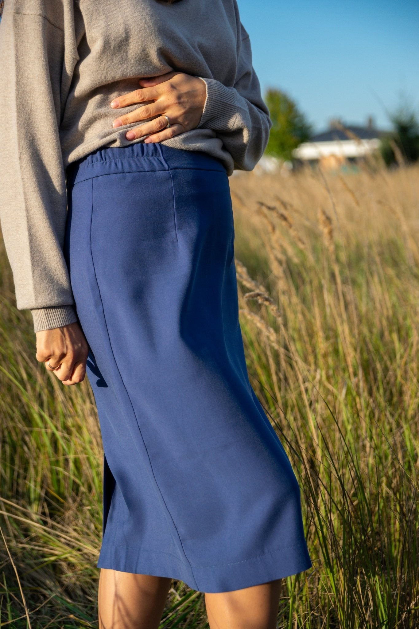 Entropia. Tak właśnie nazwano spódnicę, która wywołuje spontaniczne przejście między codziennymi rolami. Rano, gdy budzik wybrzmiewa wśród buro-szarych świateł poranka, entropia objawia się jako perfekcyjna baza biurowej stylizacji – prosty krój za kolano, delikatny zamek, guma w pasie, subtelne pęknięcie na tyle, które dodaje swobody, gdy w biegu łapiesz kawę i torebkę.